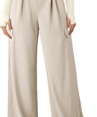 Women High Waisted Wide Leg Cargo Pants Baggy Casual Trendy Work Pants with 4 Pockets