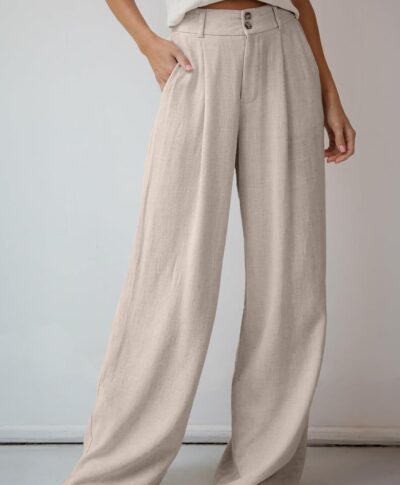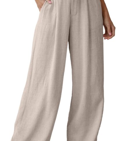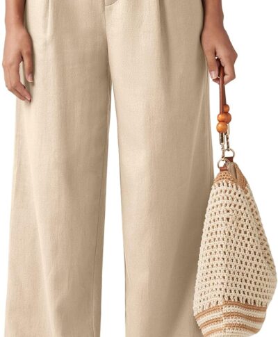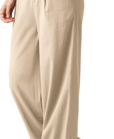 Women Linen Pants Wide Leg Work Dress Pants Casual Slacks Business Pants with Pockets 29″ 31″