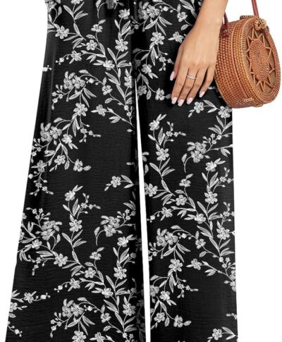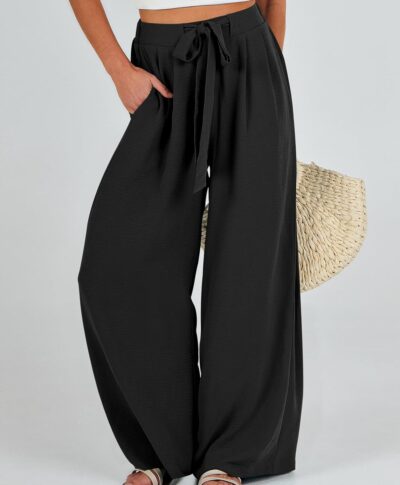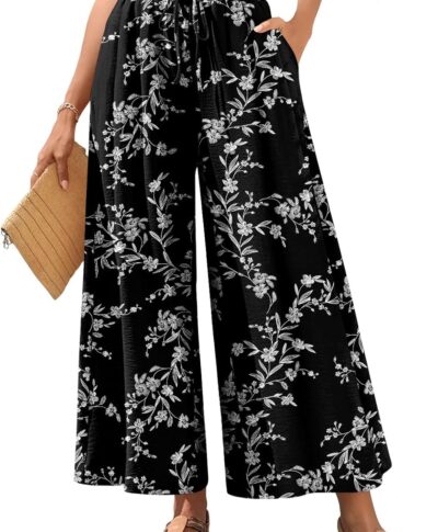 Women Wide Leg Palazzo Pants Summer High Waist Flowy Casual Trousers Loose Lounge Beach Travel Vacation Clothes