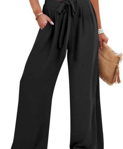 Wide Leg Palazzo Pants for Women – High Waist Casual Beach Lounge Pants Loose Dress Pants Stretchy Trousers
