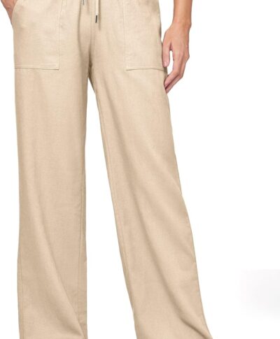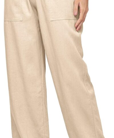 Women Linen Pants Wide Leg Casual Palazzo Pants Cotton Linen Lounge Beach Summer Pants with Pockets 29″/31″/ 33″