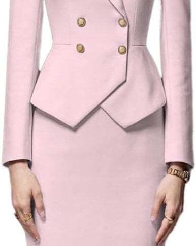 $435.99Women Business Suit 2 Piece Double Breasted Long Sleeve Skirt Suit Set Lady Blazer Solid Slim Fit Jacket Skirt
