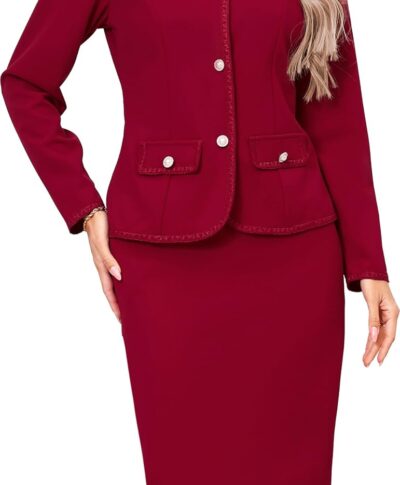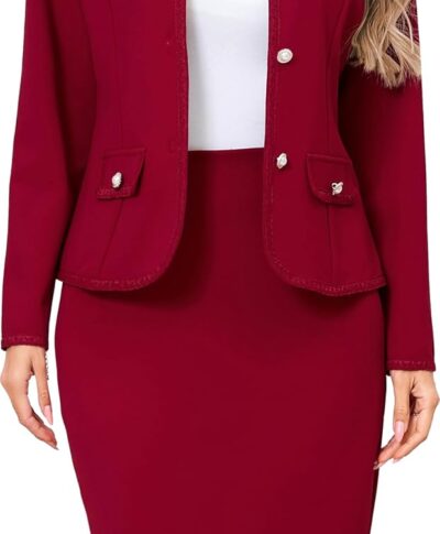 $275.99Women 2 Piece Suit Skirt Set Business Casual, Long Sleeve Knit Blazer & Pencil Skirt