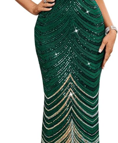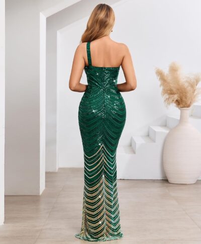 $2,199.99Women One Shoulder Sequin Evening Gown – Formal Maxi Dress for Wedding Guest, Prom, Cocktail