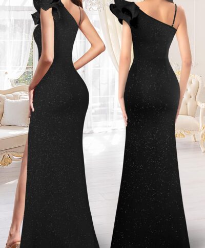 $2,799.99Women Ruffle One Shoulder Strap Ruched Formal Prom Wedding Maxi Dress V Neck Elegant Split Cocktail Evening Long Gown