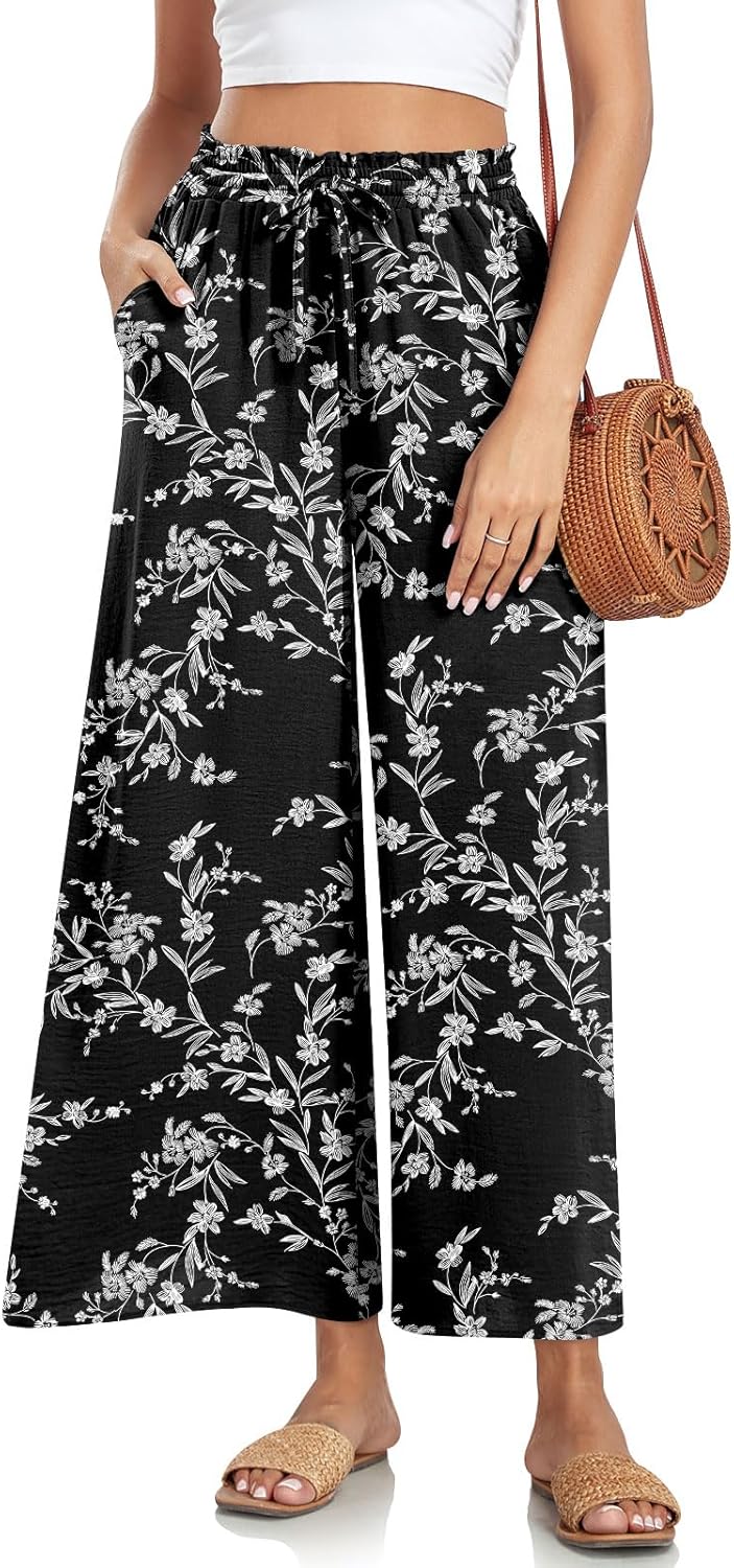 - Features: loose wide-leg design, elastic high-waist with drawstring, it’s a business – casual style, not see-through, it serves as linen beach pants for women to cover up, and it’s a flowy and dressy style that is chic and comfy